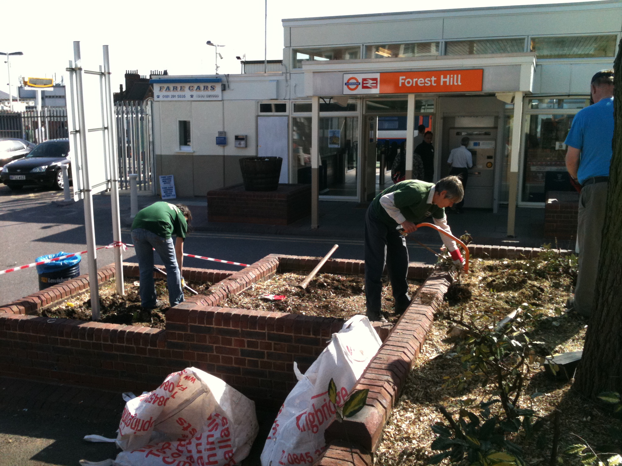 On a very sunny Saturday morning, volunteers worked to dig out the raised brick planters outside Forest Hill Station. People from the Forest Hill Society, Nature’s Gym and the Manager of Forest Hill Sation managed to dig out all the old shrubs and prepare the ground ready for the planting day on 16th April.