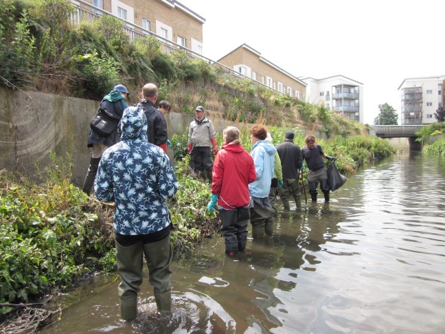 On a rainy Saturday morning a merry bunch of volunteers waded in the River Ravensbourne to clear the litter and pull up Himalayan Balsam. Suprisingly there was very little litter and not very much Balsam. We did find some interesting catapillas though on the way.