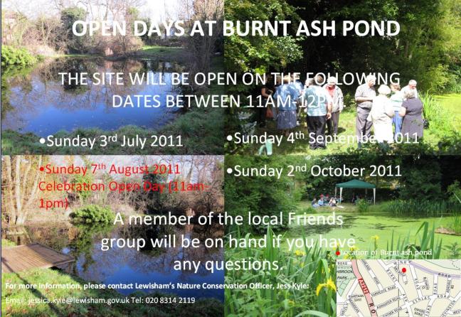Fore more information on the Ecology of the site, please visit the London Borough of Lewisham website. On 7th August the site will be open from 11am-1pm. We will be having a celebation for all the enhencements that have taken place at the pond. Friends and Concil Officers will be on hand to answer any questions that you may have.