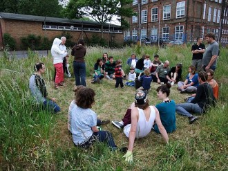 We’re a friendly group of local people who got together in 2010 to manage a rough piece of land located at the crossroads of Lucas Street and Thornville Street, SE8. The land belongs to Network Rail and is directly over a railway cutaway. Because it’s over a tunnel the land has all sorts of restrictions as it can’t have too much weight put on it, can’t have trees with big roots on it and has no water source. This means there will never be buildings or allotments there, and for Network Rail’s insurance reasons, the site can’t have animals (such as horses) or permanent open access to the public.