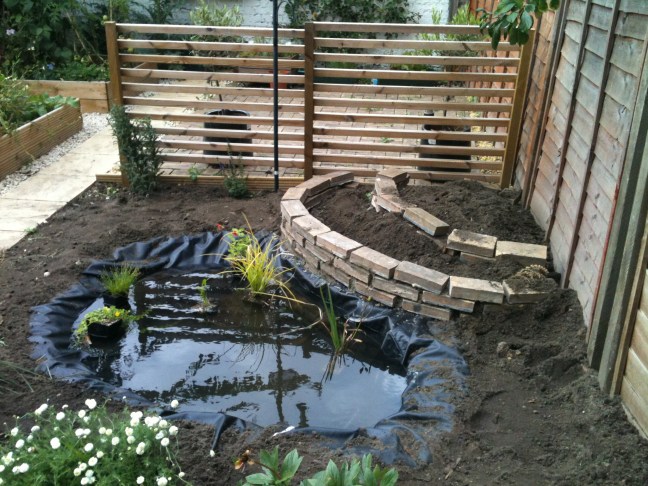 The size of your pond is up to you and your budget. The size of your pond should be in scale to the size of your garden, but even the smallest of ponds can be of great wildlife value. Garden ponds needn’t be deep, but for a wildlife pond they should be at least 40cm-50cm deep, but remember you will need to create shallower margins around the sides. This is probably the most important design element of the pond. Make sure you leave LOTS of shallow water shelf area at about 1-15cm deep, where water plants will flourish. The margins should be very gently sloping in at least some places, so the finished pond merges naturally into the land.