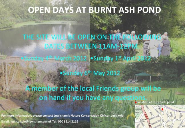 Burnt Ash Pond Open Days Posted on February 17, 2012February 17, 2012 by Jess kyle Open Days at Burnt Ash Pond Share this: Click to share on X (Opens in new window) X More Click to share on Facebook (Opens in new window) Facebook Click to share on Tumblr (Opens in new window) Tumblr Like Loading... Related