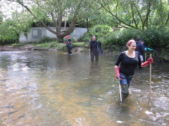 The rain held off and the sun shone on the Nature’s Gym volunteers this week as they took the the Ravensbourne as part of the 3Rivers Clean Up. We waded downstream through Brookmill Park removing the litter and Himalayan Balsam.