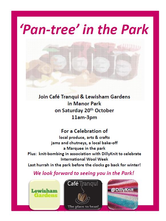 Next month Lewisham Gardens in association with Cafe Tranqui in Manor Park will hosting ‘Pan-tree in the Park’ an Autumn themed event to showcase homemade and home-grown produce! The event will be a chance to celebrate the efforts of local artists, gardeners, home bakers and crafty types!