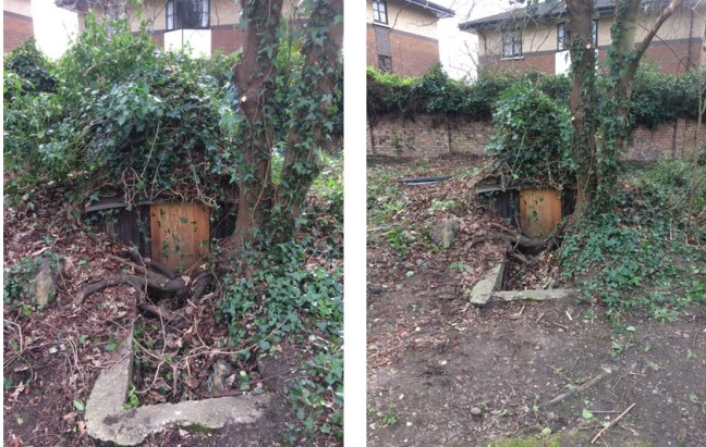 One of the first things we did was to clear the ivy and other overgrown vegetation from the Anderson Shelter which is in the garden. One of our volunteers remembers using his when he was little!