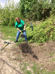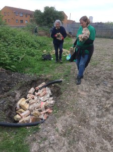 It took two sessions to get through the layers of rubble, clay and flint and goodness knows what else(!), but we eventually made our hole big enough (3ms long) and deep enough (about 900mm)! Once the hole was dug we filled it with bricks being careful to remember to add tubing to allow for the reptiles to escape and finally added branches on top. It is always tempting to see if anything has moved in, but we know that we have to leave it well alone.