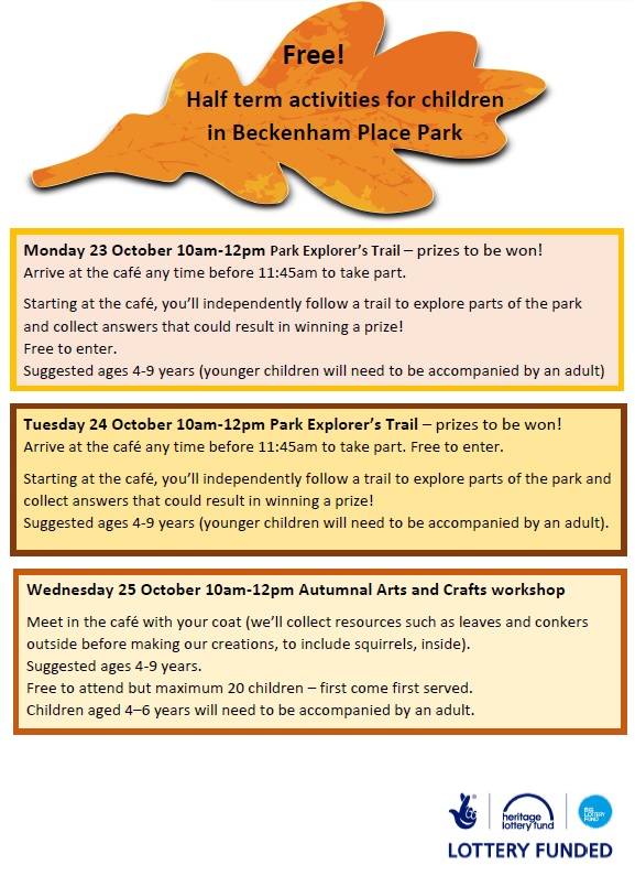 Beckenham Place Park – Half Term Activities 2017 Posted on October 23, 2017 by Jess kyle Share this: Click to share on X (Opens in new window) X More Click to share on Facebook (Opens in new window) Facebook Click to share on Tumblr (Opens in new window) Tumblr Like Loading... Related