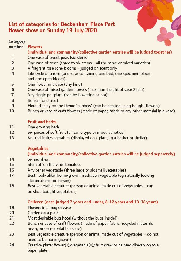 2020 Flower show categories