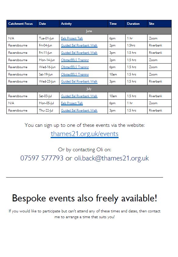 LATEST – Thames 21 – Ravensbourne Eel project events Posted on June 7, 2021June 9, 2021 by Jess kyle Share this: Click to share on X (Opens in new window) X More Click to share on Facebook (Opens in new window) Facebook Click to share on Tumblr (Opens in new window) Tumblr Like Loading... Related