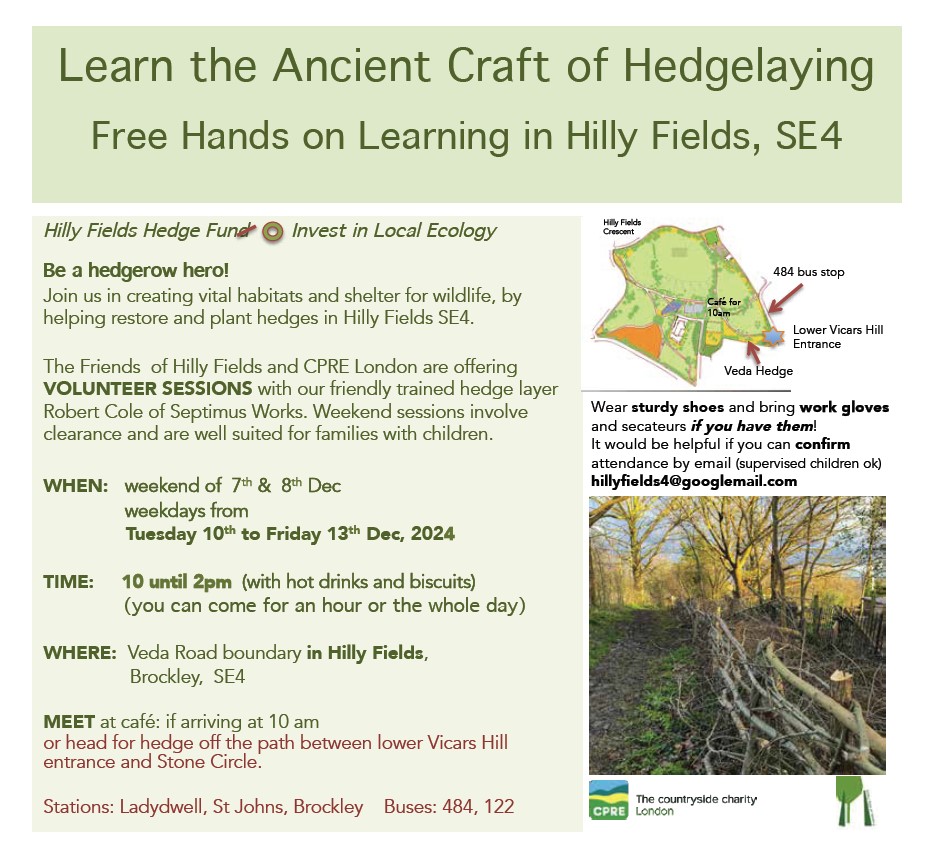 Learn the ancient craft of hedgelaying in Hilly Fields Posted on December 9, 2024December 9, 2024 by Jess kyle Share this: Click to share on X (Opens in new window) X More Click to share on Facebook (Opens in new window) Facebook Click to share on Tumblr (Opens in new window) Tumblr Like Loading... Related