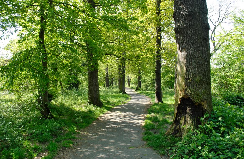 The Woodland Walk is a narrow strip of woodland, most of which is considered to be ancient in origin. It zigzags between the houses of Downham for just over one and a half kilometres. The Green Chain Walk runs along the length of the site, on its way between Beckenham Place Park and Hither Green nature reserve.